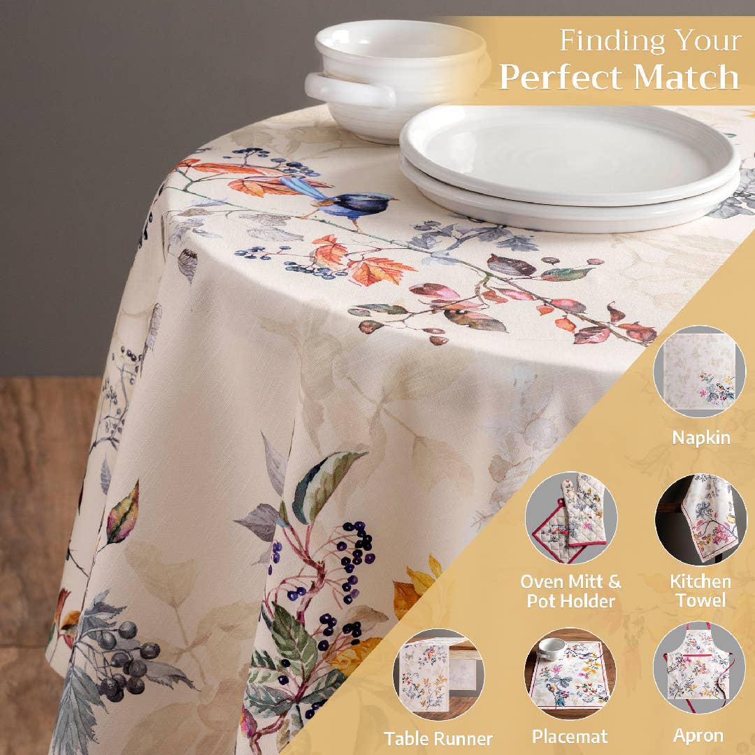 The Bird and Branch tablecloths are perfect for kitchen & dining room. They are ideal for a formal dinner or a casual gathering.