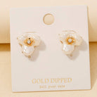 Gold Dipped Pearl And Gem Flower Stud Earrings